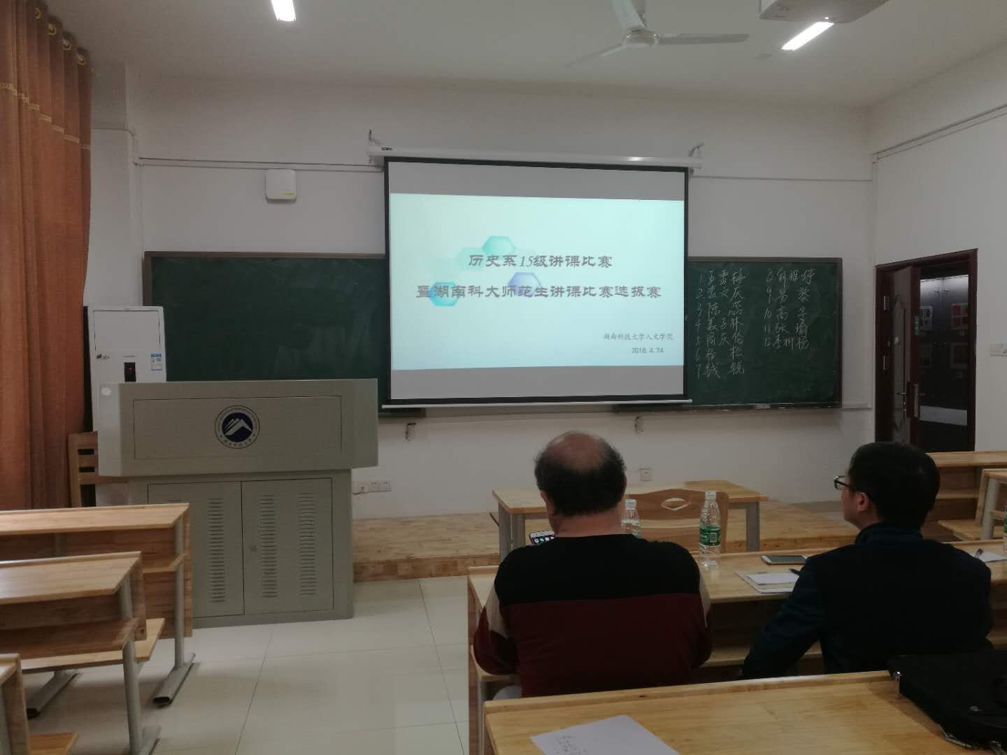 4月24日下午,人文学院历史系15级讲课比赛暨湖南科技大学师范生讲课比赛选拔赛在立言楼B103如期举行。人文学院副院长欧阳萍、历史系主任周方高、以及指导老师沈绍根、李建明、宋登卯、戴书宏出席并担任评审,15级历史系全体同学到场观看。