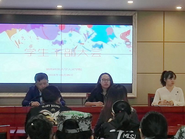 为推动助学金评定相关工作的进行,传达学风建设以及运动会的相关通知,我院于10月9日中午在文科楼4-1召开了学生干部大会暨助学金评定会议。出席本次会议的有我院党委副书记邓辉、辅导员赵晗冰、赵华、王嘉敏、曾思妍、何舒香老师以及学生会主席团、各部部长、各班主要学生干部。