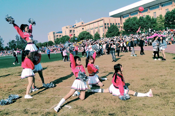 伴随着律动的开场音乐响起,啦啦队员脚踏动感的节拍,表演着她们精心编排后的舞蹈,为运动员加油鼓劲。她们动作整齐,舞姿各具风采,在阳光之下显得格外美丽,有的动感十足,有的灵动活泼,有的曼妙飘逸,精彩的表演瞬间点燃了现场气氛,欢呼声、喝彩声、口号声响彻整个运动场。一场表演结束,还没来得及休息,队员们又转移场地,开始第二场表演,为其他学院的观众带去了这场视听盛宴。随着自由律动的音乐,她们布满汗水的脸上洋溢着灿烂的笑容,有力的脉动张扬着属于花季的灿烂。文艺部的韦柳妮提到这些拉拉队队员为了这场比赛排练了许久,“我们做好了充足的准备,为了向全校展示人文学院的风采,拉拉队的成员们都相当努力,而热烈的掌声就是对他们最好的鼓励。”