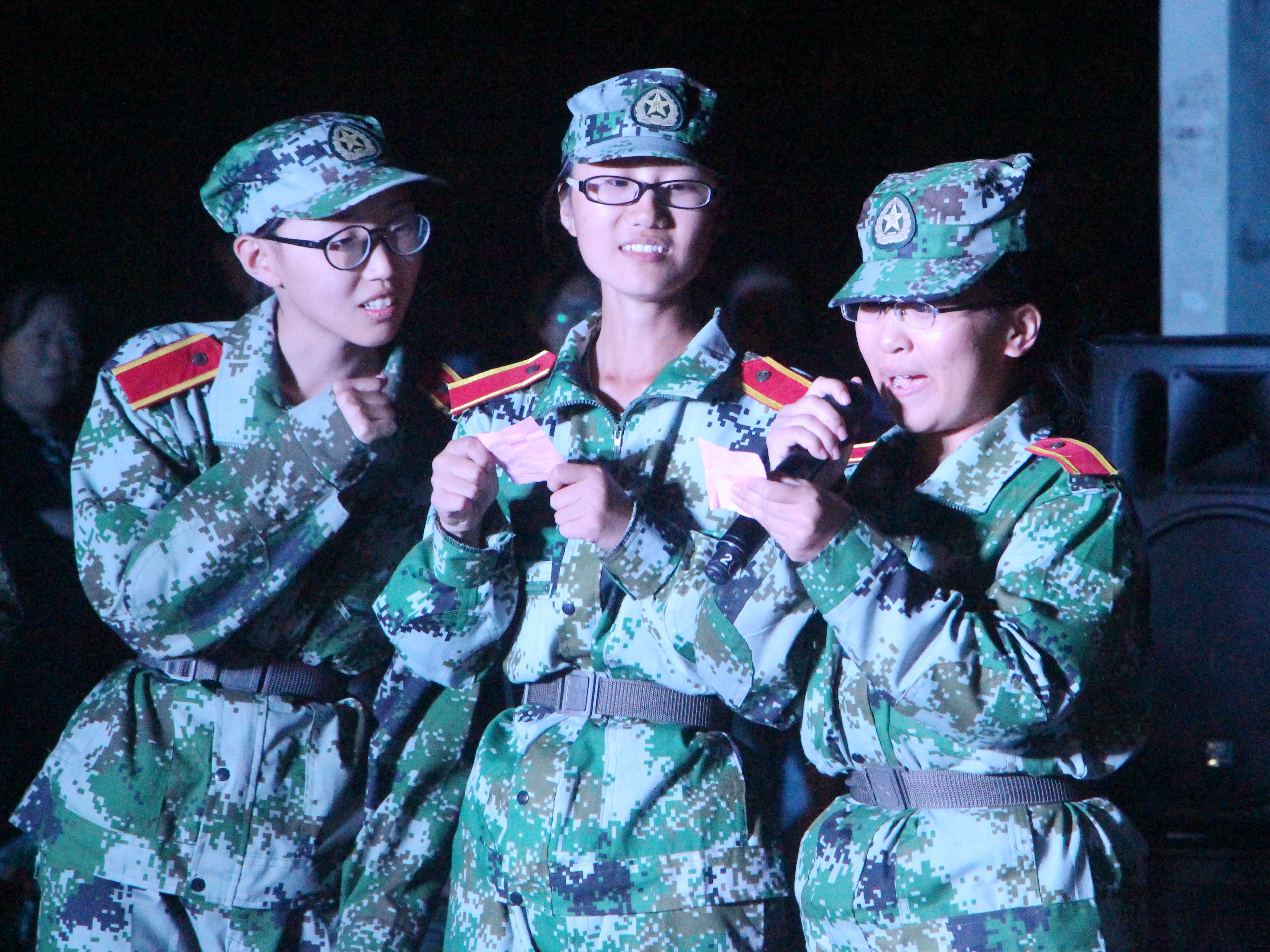 10月11日晚,由我院社联部、语言艺术部联合举办的2018级军训慰问演出在全院新生殷切期待中于北校旧篮球场正式开始,晚会由靳江北、许昕悦主持。18级辅导员何舒香及全体教官、新生到场观看演出。