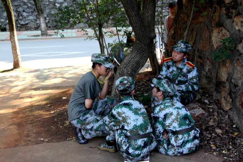 几天训练过后,来自四营一连八排的胡教声音已然嘶哑,听起来却力量不减。训练时,胡教并没有因为自己声音损伤而有所懈怠,严格要求新生,更严格要求自己。当新生为胡教的声带担忧时,胡教爽朗一笑:“训练过程是很重要的,有些其他排的教官声带损坏比我还要严重,这些小困难我们都会克服的,没关系的。”大家无不钦佩这位铮铮铁骨的女教官。训练休息期间,胡教与因受伤而不能参加训练的同学聊天,关切地询问着他们的身体状况。“感觉有些同学对进入方阵队并不是很向往,缺乏这方面的热情,”对于八排的训练情况,胡教建议:“希望同学们积极参与方阵队训练,不仅可以提高自我,也可以扩大自己的朋友圈,认识更多的朋友。”
