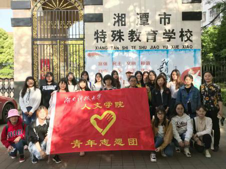 自2013年在湘潭市特殊学校建立服务基地,人文学院青年志愿团特殊学校活动已经进行到第六期。由志愿团院内招募志愿者,在校期间每月一次对湘潭市特殊学校学前语训班建立一对一的长期服务。