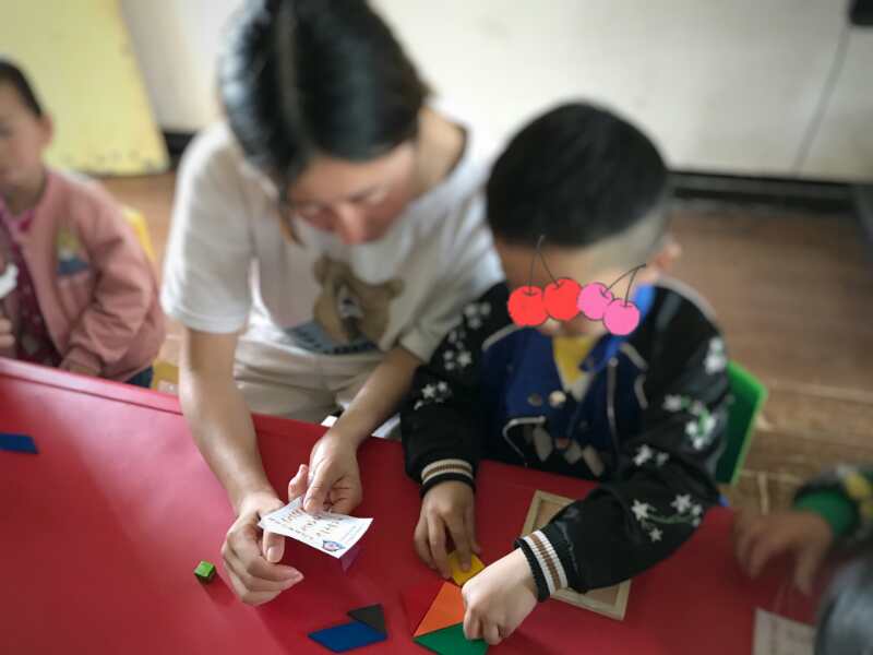 活动中,志愿者们还将七巧板分发给孩子们,他们立即表现出浓厚的兴趣,志愿者们根据拼图的指示带领小朋友们拼出了各式各样的形状物体,一个个“小狗”、“小马”跃然于眼前,活灵活现,小朋友热火朝天地玩着,不亦乐乎。活动最后,志愿者带领小朋友们阅读故事书,“书是人类进步的阶梯”,小朋友们不仅在阅读生动有趣的插画中学会发音识字,故事书中的“爸爸教儿子如何洗澡刷牙吃饭”还使他们日常生活的自理能力得到提高。