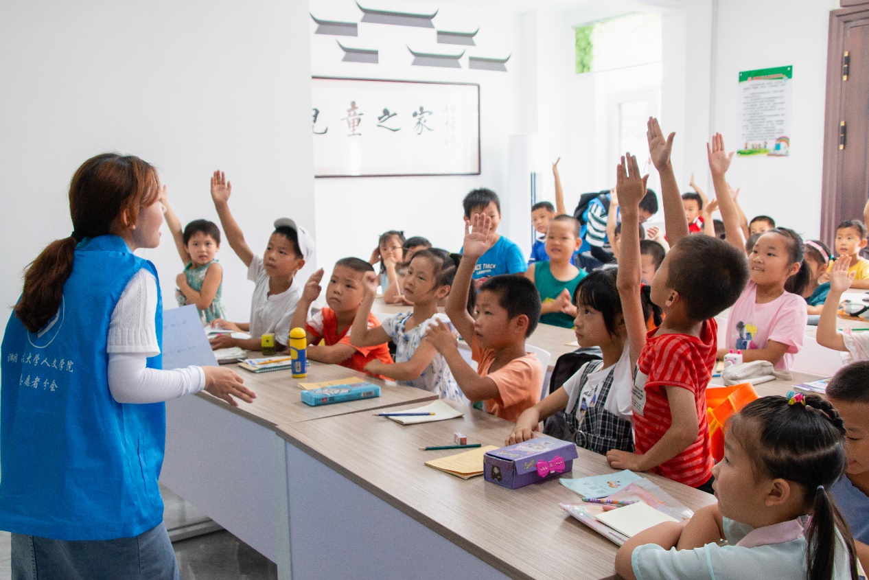 "嘀嘀、嘀嘀……",六点的闹铃一响,志愿者们迅速起床洗漱。早饭后,他们沿着两侧布满牵牛花、狗尾巴草的小道来到教学点。人文学院团委书记曾思妍说:“在昨天了解当地留守儿童、教学环境等情况之后,我们便组织开会为各个班级分配了班主任及科任老师,要求各位志愿者提前备课,以确保今天的的教学顺利进行,让留守儿童感受来自青年志愿者们的温暖与关怀。”