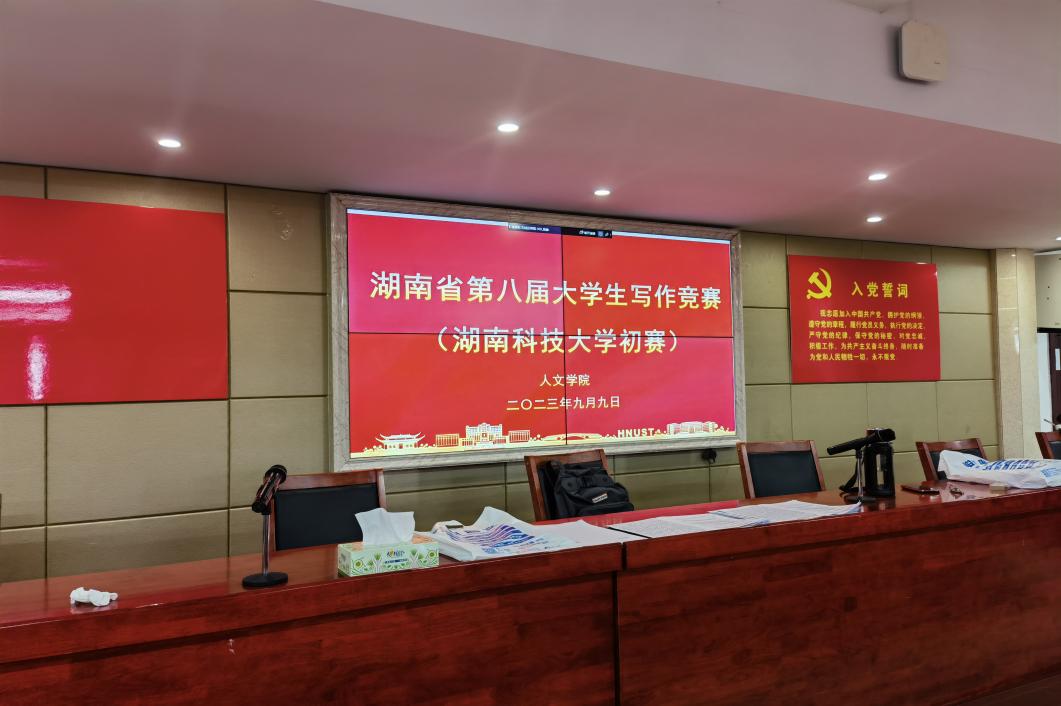 9月10日下午,历时两天的湖南省第八届大学生写作大赛初赛工作顺利结束,此次大赛由湖南科技大学教务处举办、人文学院承办,来自湖南科技大学汉语言文学、汉语国际教育专业共67位同学参加,比赛于9月9日上午在立言楼4-1和B417展开,参赛考生们严格遵守考试纪律和考场基本规范,以饱满的精神和扎实的文学功底,尽情挥洒才气。