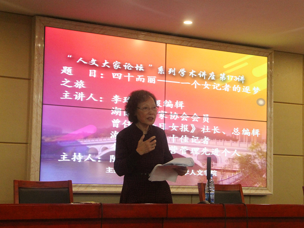成为一名成功的新闻人应该具备怎样的精神?10月16日下午,《今日女报》社前社长、高级编辑李玲做客我院人文大家讲坛,在立言楼B4-1会议室做了一场题为“四十而丽——一个女记者的逐梦之旅”的讲座。李玲结合自己经历解答了成为成功新闻人的精神素质——“四要”。