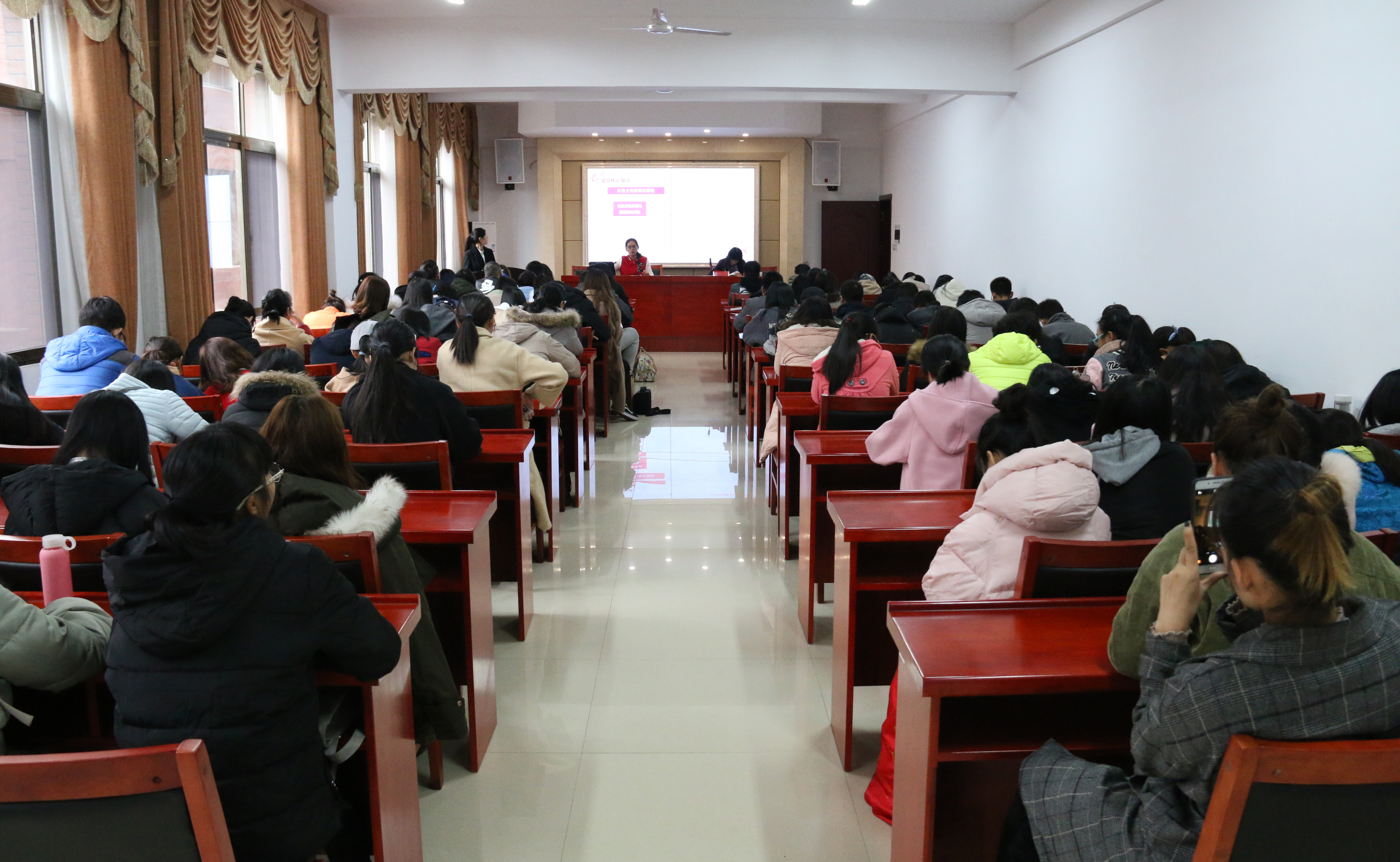 报告会现场,来自湖南大学、中南大学和湖南科技大学的七位研究生同学先后对自己的报告进行讲解。“红色在中国人眼中是祥瑞之兆,尚红是中国的传统。”中南大学马克思主义研究生杨柳在本次报告会上对中国的红色文化进行深入讲解,首先介绍古今中外对红色文化的不同理解,着重讲解红色文化的产生、现实困境以及其当代价值。从五四新文化运动时期红色文化的产生到讲述红色文化在当代对教育、文化、精神的影响及价值,其每个方面都有独特的见解。杨柳在报告最后用自己的一句话鞭策在场的学生:“理想若星辰,红星照我去战斗;信念如长风,直挂云帆济沧海。” 文化的创新是在不停地反思与继承中进行的,我们应不断反思自己不断创新发展。