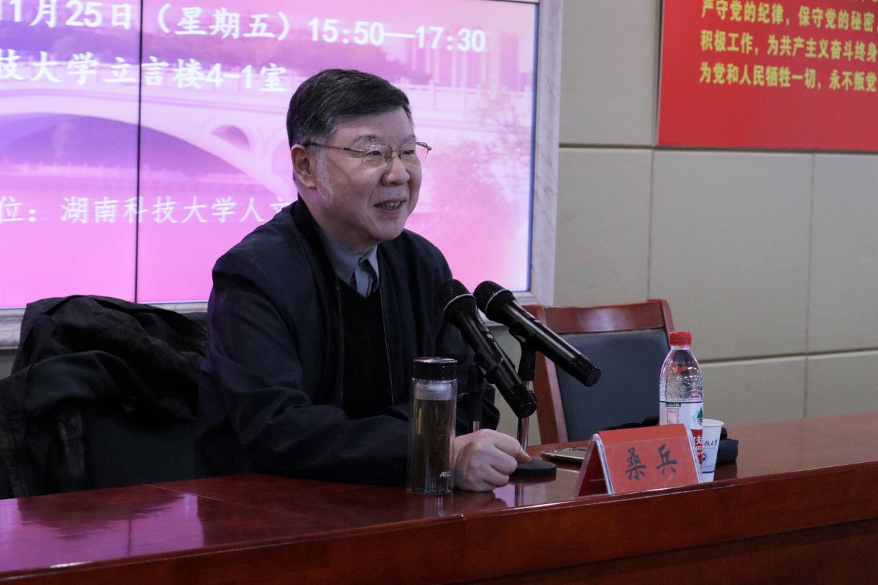 11月25日下午,由湖南科技大学人文学院主办的湘江高端学术论坛暨“人文大家论坛”第234讲于立言楼4-1室举行。浙江大学文科资深教授桑兵应邀为我院师生作“史学、史料、史观与史法”的学术讲座。湖南科技大学社科处副处长段斌,马克思主义学院和人文学院10余位教师以及部分历史系学生到场聆听学习。本次讲座由徐红教授主持。